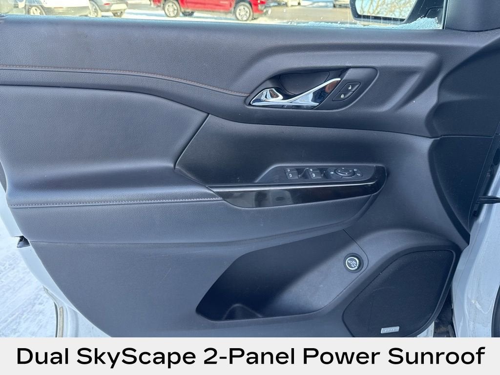 AWD, Jet Black/Kalahari Leather, 170 Amp Alternator, 6-Passenger (2-2-2 Seating Configuration), 6-Speaker Audio System Feature, 8-Way Power Passenger Seat Adjuster, AM/FM radio: SiriusXM, Apple CarPlay/Android Auto, Auto High-beam Headlights, Auto-dimming Rear-View mirror, Automatic Emergency Braking, Black Center Caps w/Red GMC Logo (LPO), Brake assist, Delay-off headlights, Driver Alert Package II (BGP), Dual SkyScape 2-Panel Power Sunroof, Emergency communication system: OnStar and GMC connected services capable, Following Distance Indicator, Forward Collision Alert, Front & Rear Park Assist, Front Bucket Seats, Front dual zone A/C, Front fog lights, Front Pedestrian Braking, Fully automatic headlights, Garage door transmitter, Heated Driver & Front Passenger Seats, Heavy-Duty Cooling System, Hitch Guidance, IntelliBeam Automatic High-Beam Headlamps, Lane Keep Assist w/Lane Departure Warning, Power Liftgate, Preferred Equipment Group 4SB, Rear Air, Remote keyless entry, Safety Alert Seat, Steering wheel mounted audio controls, Trailering Assist Guidelines, Trailering Package, Wheels: 20 Machined Aluminum w/Dark Accents.