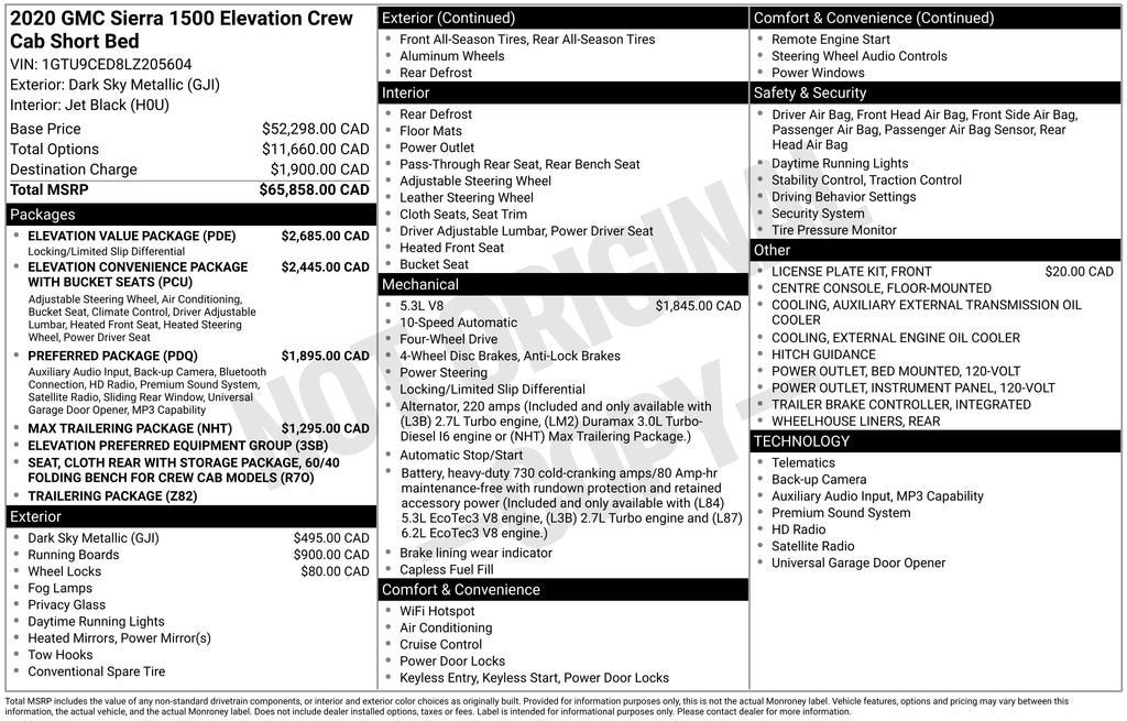 - Elevation Convenience Package or Elevation Convenience Package with Bucket Seats