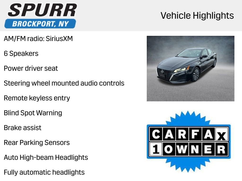 CVT with Xtronic, 6 Speakers, AM/FM radio: SiriusXM, Auto High-beam Headlights, Blind Spot Warning, Body-Colored Splash Guards, Brake assist, Delay-off headlights, Floor Mats/Trunk Mat/Hideaway Net, Front Bucket Seats, Front Center Armrest, Fully automatic headlights, NissanConnect featuring Apple CarPlay and Android Auto, Power driver seat, Rear Parking Sensors, Rear seat center armrest, Remote keyless entry, Steering wheel mounted audio controls, Telescoping steering wheel.