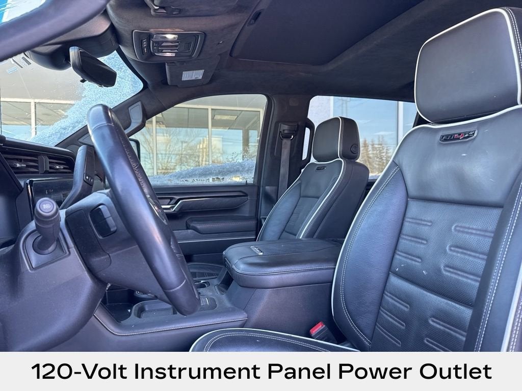 10-Speed Automatic, 4WD, Obsidian Rush Leather, 12 Speakers, 120-Volt Bed Mounted Power Outlet, 120-Volt Instrument Panel Power Outlet, 16-Way Power Driver Seat Adjuster w/Lumbar, 16-Way Power Passenger Seat Adjuster w/Lumbar, 2 Charge-Only Rear USB Ports, 2 Charge/Data USB Ports Inside Center Console, 2 USB Ports, 2-Speed Active Transfer Case, 220-Amp Alternator, AM/FM radio: SiriusXM with 360L, Apple CarPlay/Android Auto, Auto High-beam Headlights, Auto-dimming door mirrors, Auto-dimming Rear-View mirror, Automatic Emergency Braking, Bed View Camera w/2 Trailer Camera Provisions, Bose Premium Series 12-Speaker System, Brake assist, Deep-Tinted Glass, Delay-off headlights, Driver Memory, Electric Rear-Window Defogger, Emergency communication system: OnStar and GMC connected services capable, Engine Block Heater, Exhaust Brake, Floor-Mounted Center Console, Following Distance Indicator, Forward Collision Alert, Front Bucket Seats, Front Center Armrest, Front dual zone A/C, Front fog lights, Front Pedestrian Braking, Front Prem Floor Liners w/Removable Carpet Insert, Front Rain-Sensing Wipers, Full Grain Leather Seat Trim, Fully automatic headlights, Garage door transmitter, Gloss Black Door Handles, Gloss Black Header Grille & Grille Insert Bars, GMC Connected Access Capable, Gooseneck/5th Wheel Prep Package, HD Surround Vision, Heads-Up Display, Heated 2nd Row Outboard Seats, Heated door mirrors, Heated Driver & Front Outboard Passenger Seats, Heated steering wheel, Heavy-Duty 80 Amp Battery, Hill Descent Control, Hitch Guidance w/Hitch View, In-Vehicle Trailering System App, Inside Rearview Auto-Dimming Rear Camera Mirror, Integrated Trailer Brake Controller, IntelliBeam Automatic High Beam On/Off, Keyless Open & Start, Lane Departure Warning System, Leather steering wheel, LED Cargo Area Lighting, LED Smoked Amber Roof Marker Lamps, Manual Tilt-Wheel/Telescoping Steering Column, Memory seat, Multicolor 15 Diagonal Head-Up Display, Off-Road Suspension, OnStar & GMC Connected Services Capable, Power door mirrors, Power driver seat, Power Front Passenger Windows w/Express Up/Down, Power Sliding Rear Window w/Defogger, Power Sunroof, Preferred Equipment Group 4SG, Push Button Start, Rain sensing wipers, Rear Cross Traffic Alert, Rear Prem Floor Liners w/Removable Carpet Insert, Rear step bumper, Rear Underseat Storage (LPO), Rear Wheelhouse Liners, Remote keyless entry, Remote Vehicle Starter System, Safety Alert Seat, SiriusXM w/360L, Snow Plow Prep/Camper Package, Speed-sensing steering, Split folding rear seat, Spray-On Bedliner w/AT4 Logo, Steering Wheel Audio Controls, Steering wheel mounted audio controls, Trailer Cam Provisions & Trailer Viewing Software, Trailer Side Blind Zone Alert, Trailer Tire Pressure Monitor Sensors, Turn signal indicator mirrors, Ultrasonic Front & Rear Park Assist, Unauthorized Entry Theft-Deterrent System, Universal Home Remote, Ventilated Driver & Front Passenger Seats, Wireless Charging, Wireless Phone Projection.
