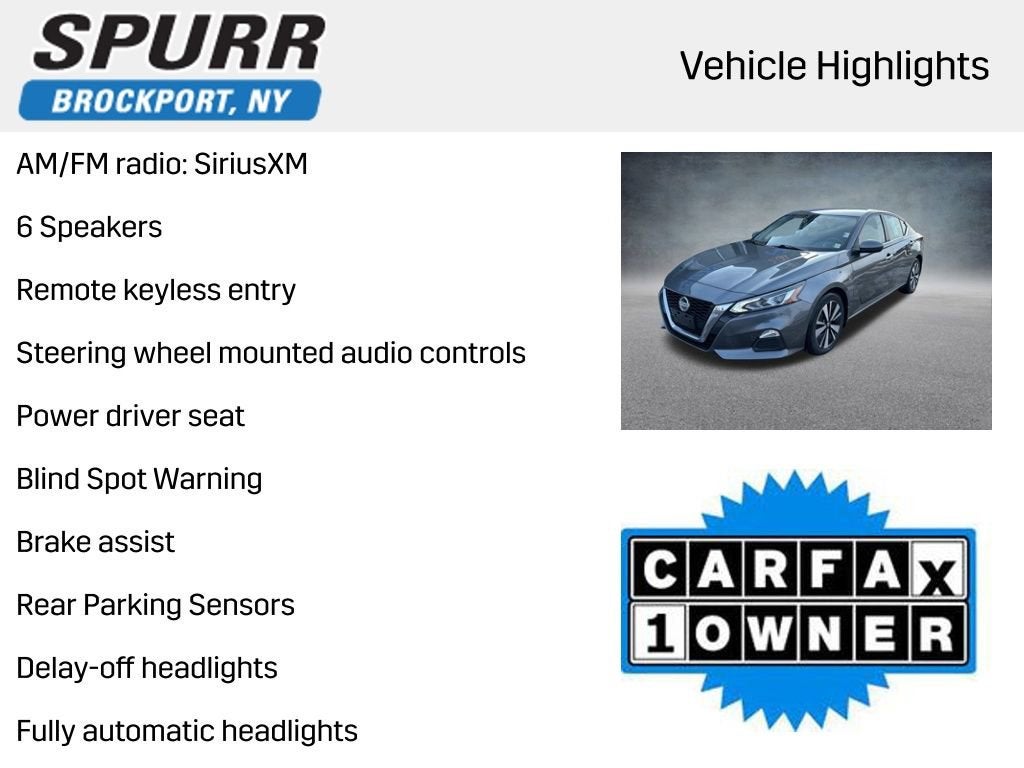 CVT with Xtronic, 20 Color Interior Accent Lighting, 6 Speakers, AM/FM radio: SiriusXM, Auto High-beam Headlights, Blind Spot Warning, Brake assist, Delay-off headlights, Front Bucket Seats, Front Center Armrest, Fully automatic headlights, NissanConnect featuring Apple CarPlay and Android Auto, Power driver seat, Rear Parking Sensors, Rear seat center armrest, Remote keyless entry, Steering wheel mounted audio controls, Telescoping steering wheel.