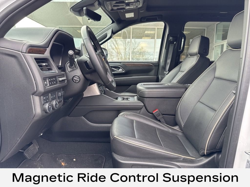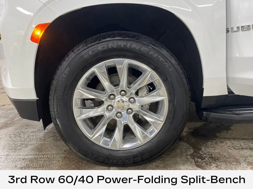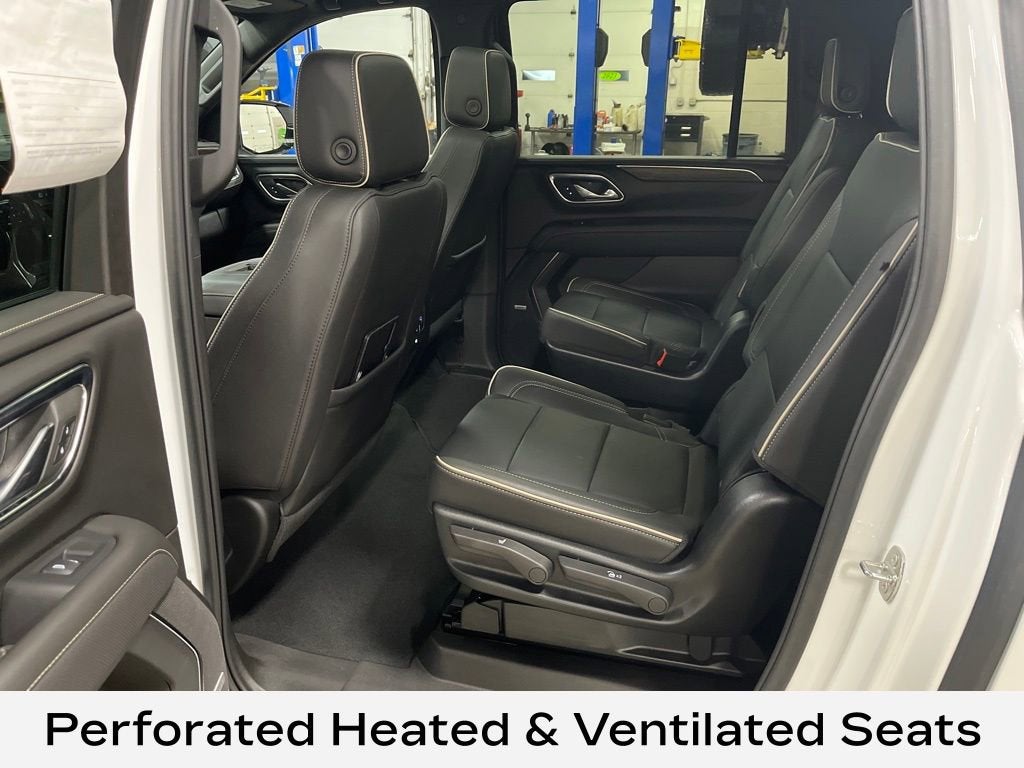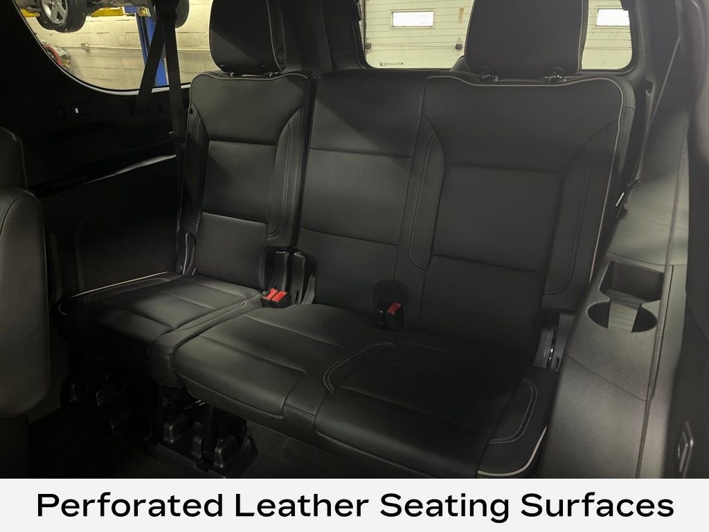 12-Way Power Driver & Passenger Seat Adjusters, 1st & 2nd Row Color-Keyed Carpeted Floor Mats, 20 x 9 Polished Aluminum Wheels, 3rd Row 60/40 Power-Folding Split-Bench, AM/FM radio: SiriusXM with 360L, Apple CarPlay/Android Auto, Auto High-beam Headlights, Auto-dimming door mirrors, Auto-Dimming Inside Rear-View Mirror, Bose 10-Speaker Surround w/CenterPoint, Brake assist, Delay-off headlights, Dual Exhaust System, Emergency communication system: OnStar and Chevrolet connected services capable, Enhanced Driver Information Center, Front Bucket Seats, Front Center Armrest, Front dual zone A/C, Fully automatic headlights, Garage door transmitter, Hands-Free Rear Power Programmable Liftgate, Heated 2nd Row Outboard Seats, Heated Steering Wheel, Lane Change Alert w/Side Blind Zone Alert, LED Daytime Running Lamps, Magnetic Ride Control Suspension, Memory seat, Navigation System, Perforated Heated & Ventilated Seats, Perforated Leather Seating Surfaces, Power driver seat, Power Liftgate, Power passenger seat, Power Release 2nd Row Bucket Seats, Premium audio system: Chevrolet Infotainment 3 Premium, Rain sensing wipers, Rear Cross Traffic Alert, Remote keyless entry, Remote Start, Steering wheel memory, Steering wheel mounted audio controls, Universal Home Remote, Wireless Charging.